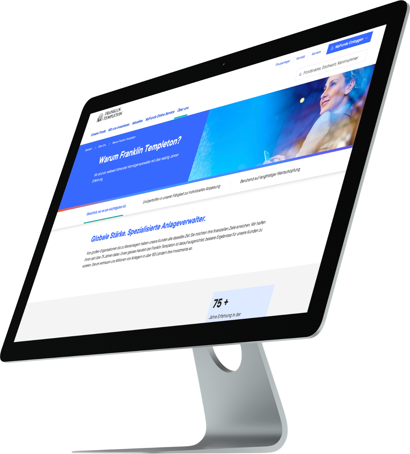 Franklin Templeton ist ein führender globaler Vermögensverwalter. Kunden profitieren von einem breiten Leistungsspektrum und einem verlässlichen Partner. Seit über 75 Jahren steht das Familienunternehmen für Stabilität, Innovation und langfristige Wertschöpfung.