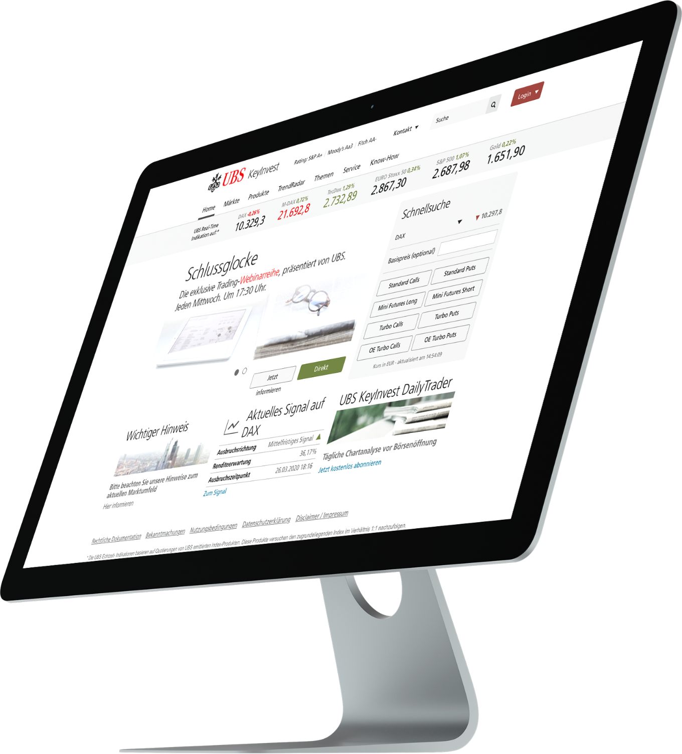 UBS bietet Ihnen im Bereich Know-How umfangreiche Informationen und damit eine optimale Vorbereitung auf die Anforderungen des Börsengeschehens. Mit den beiden Newslettern "UBS KeyInvest DailyTrader", der täglich vor Börsenbeginn erscheint, und dem wöchentlichen "UBS KeyInvest Kompakt" sind Sie bestens informiert. Im Bereich der Videos werden Ihnen viele spannende Themen in kurzen Clips erläutert.