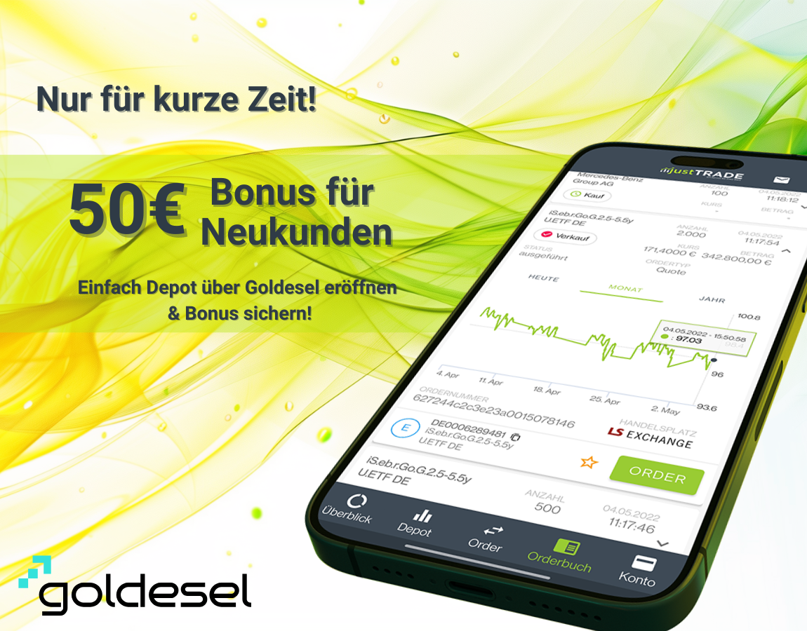 Voraussetzung zur Teilnahme an der Goldesel-Aktion von justTRADE: